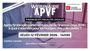 Organisé par l’APVF, en partenariat avec la Caisse d’Épargne, ce webinaire animé par Hadrien Camatte, Senior Economist à la Caisse d’Épargne, et Jean-Pierre Coblentz, expert en finances locales au cabinet Stratorial Finances a pour objectif d’éclairer les élus locaux et leurs agents sur les conséquences du projet de loi de finances pour 2026 sur les budgets des collectivités territoriales, après l’imbroglio à l’Assemblée nationale et le recours au 49.3.