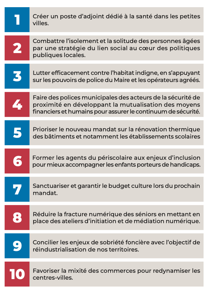 Le prochain mandat municipal sera à la fois au cœur des transitions et au cœur des urgences, face à deux défis majeurs : la transition écologique et la transition démographique, avec le vieillissement de la population. Convaincus que l’avenir passera plus que jamais par la proximité et par des collectivités à taille humaine, les élus des petites villes entendent rester des acteurs majeurs de l’action publique locale.